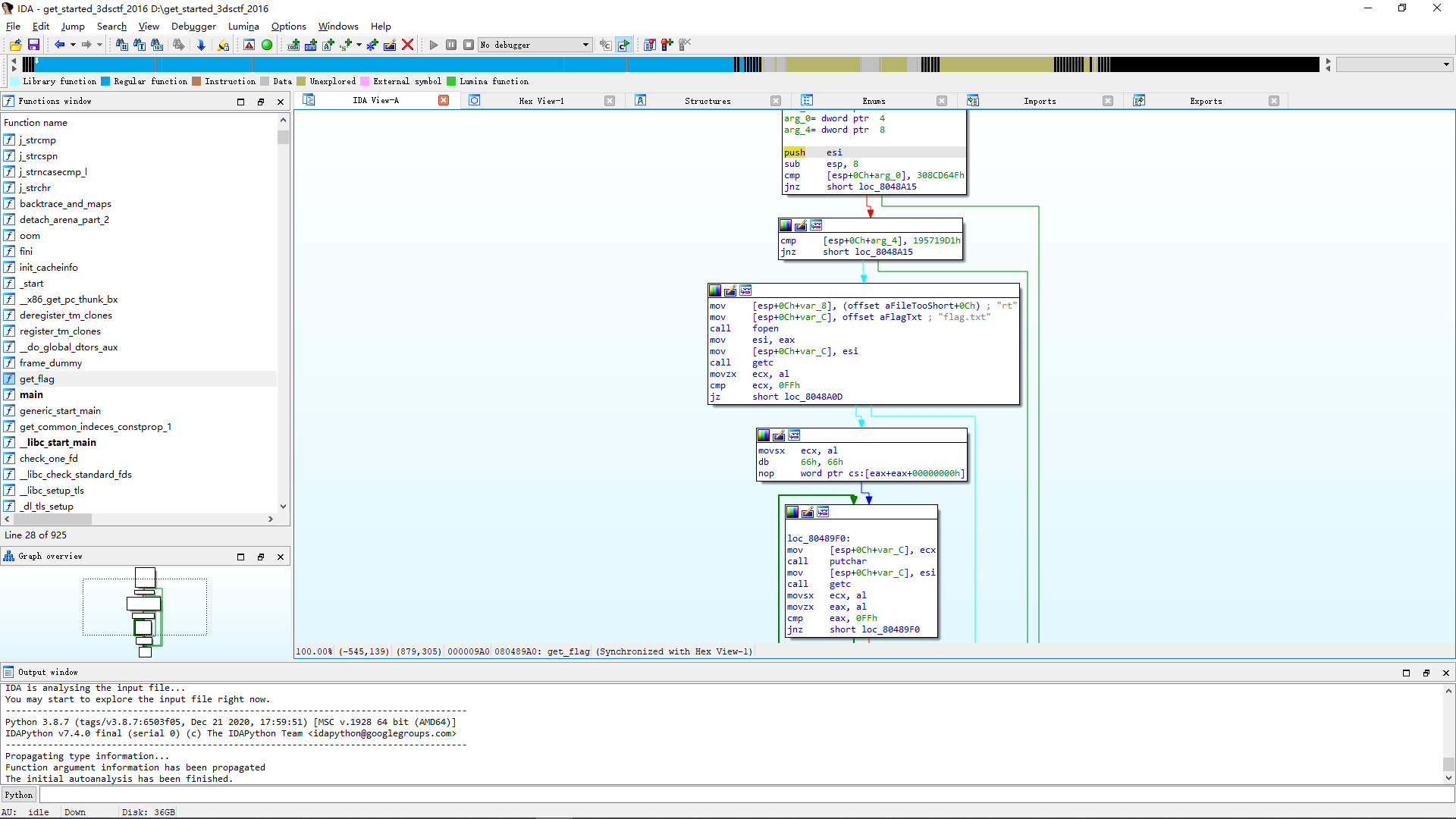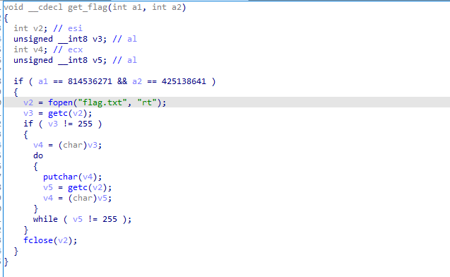 IDA打开,main函数上的get_flag函数里发现一个flag.txt