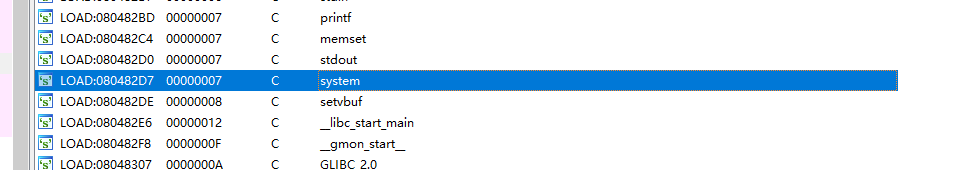 IDA打开,shift+F12查找字符串,发现sysytem函数,但没有/bin/sh,还是无法直接利用