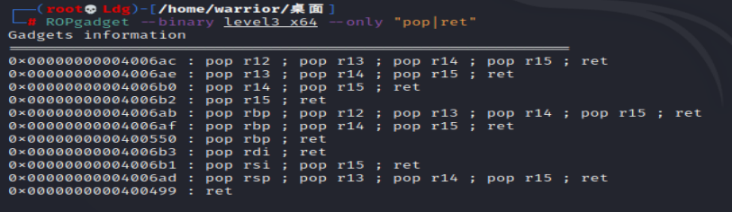 ROPgadget --binary level3_x64 --only “pop|ret”