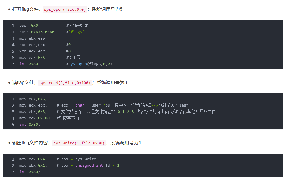 搞懂了基本原理,那就实操一下,只能利用open、read、write三个函数来读取flag。