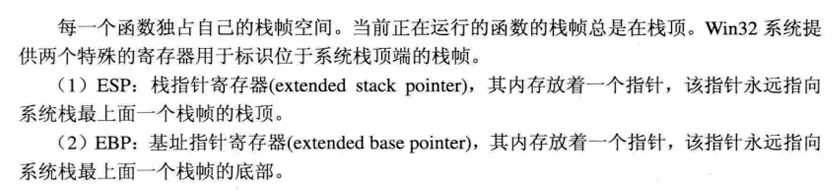第一条是将ebp推入栈中,ebp是cpu的一个寄存器,它包含一个地址,指向堆栈中的某个位置,它存放着栈底的地址