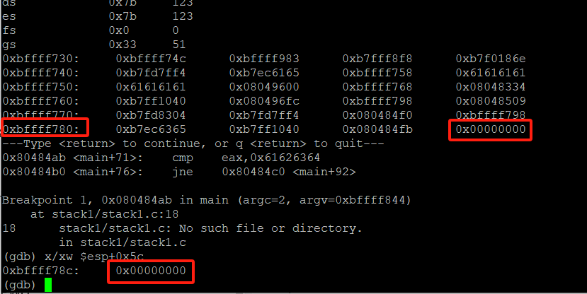 esp+0x5c地址就是栈里的0xbffff78c,每一段存放四个字符,c代表的是12