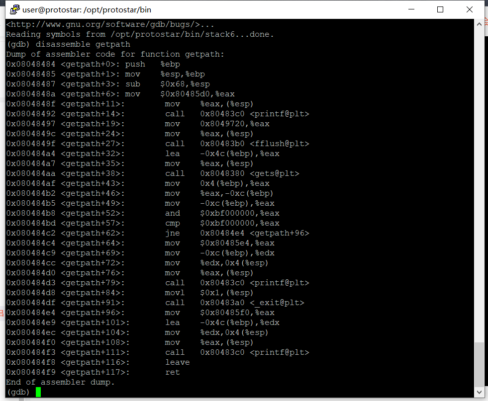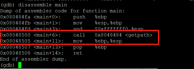 用gdb打开程序,在getpath函数执行leave指令的地址打一个断点