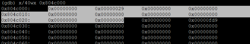 0x804c060: 0x0804c040 0x00000000 0x00000000 0x00000000