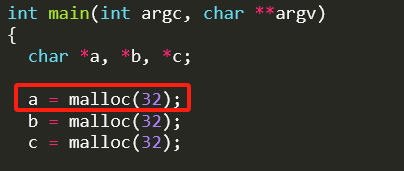 char *a, *b, *c; #声明了三个字符指针 a、b 和 c,用于指向后面通过 malloc 分配的内存
