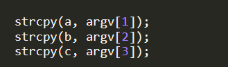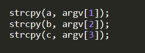 strcpy(c, argv[3]); #将命令行参数argv[3] 复制到先前分配的内存中