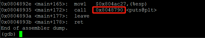 这里puts函数的plt表地址是0x8048790,我们可以查看这个地址,找到put函数的got表地址
