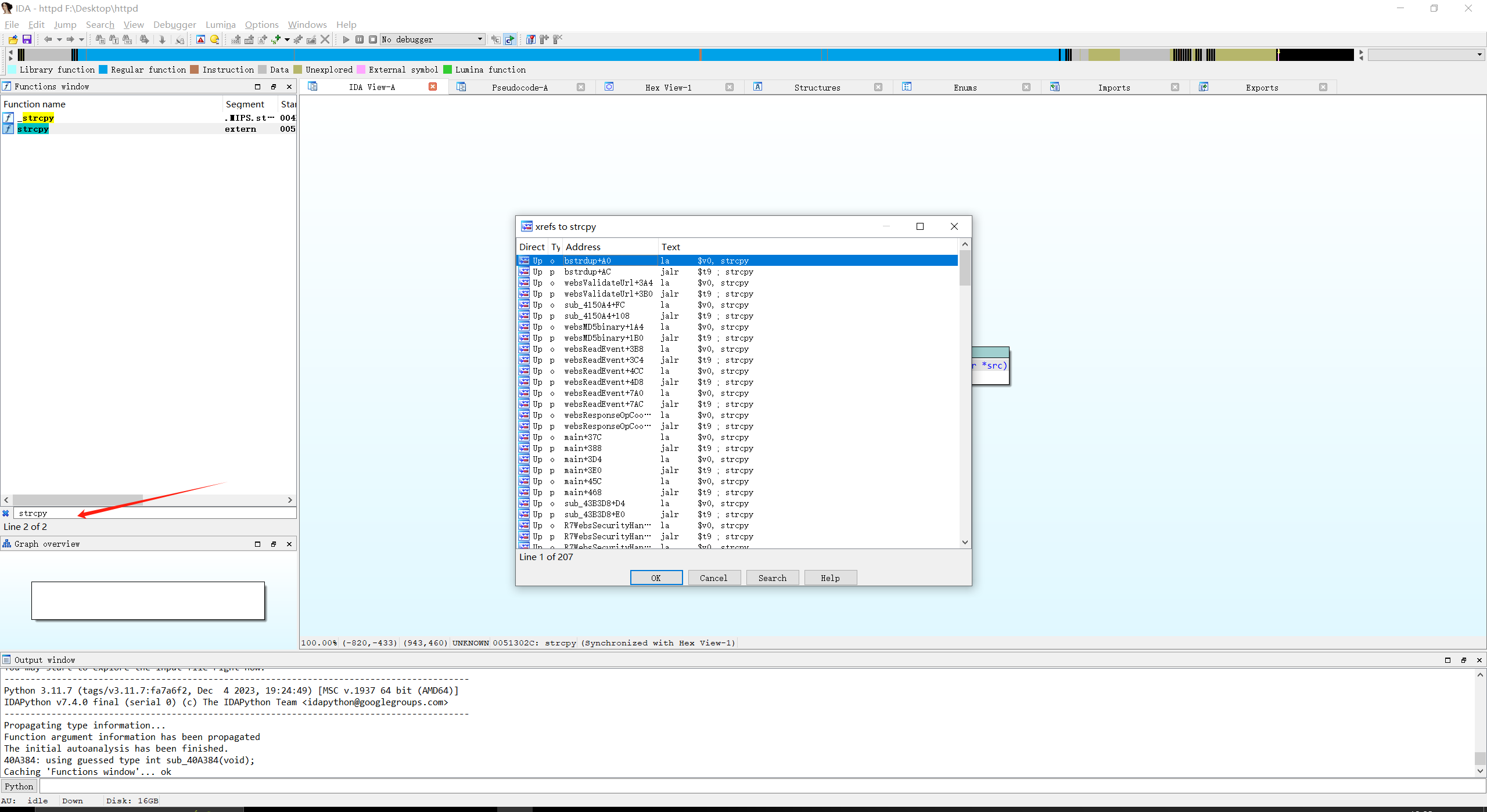 根据网上的很多博客内容知道了Tenda路由器主要的漏洞就出现在strcpy、sscanf、sprintf函数上,于是我就开门见山先上strcpy函数,还是逐个看,但是已经少了很多工作量