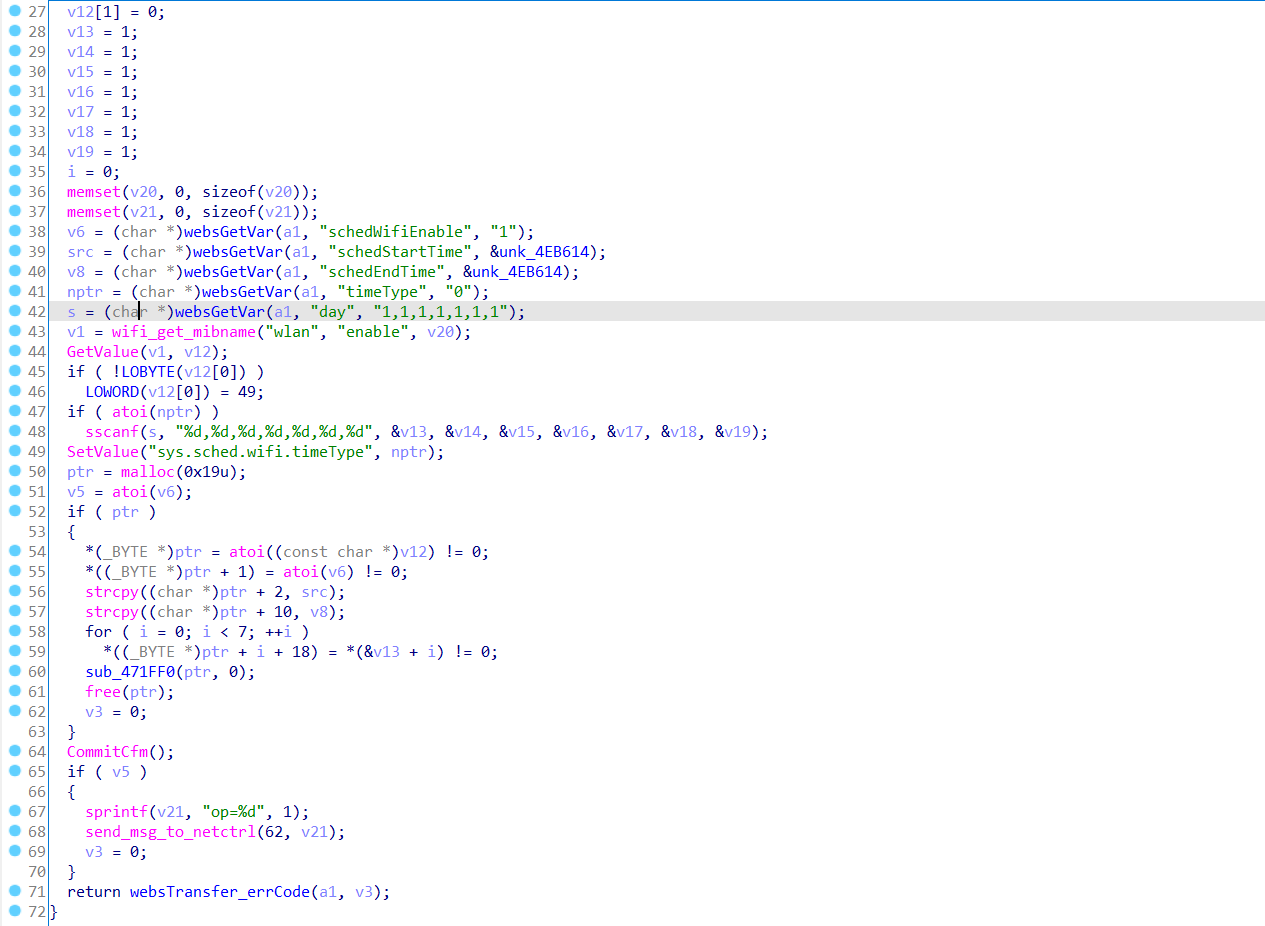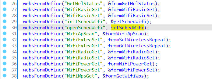 继续跟进看见这个函数的利用函数是openSchedwifi函数,一级目录名是goform。